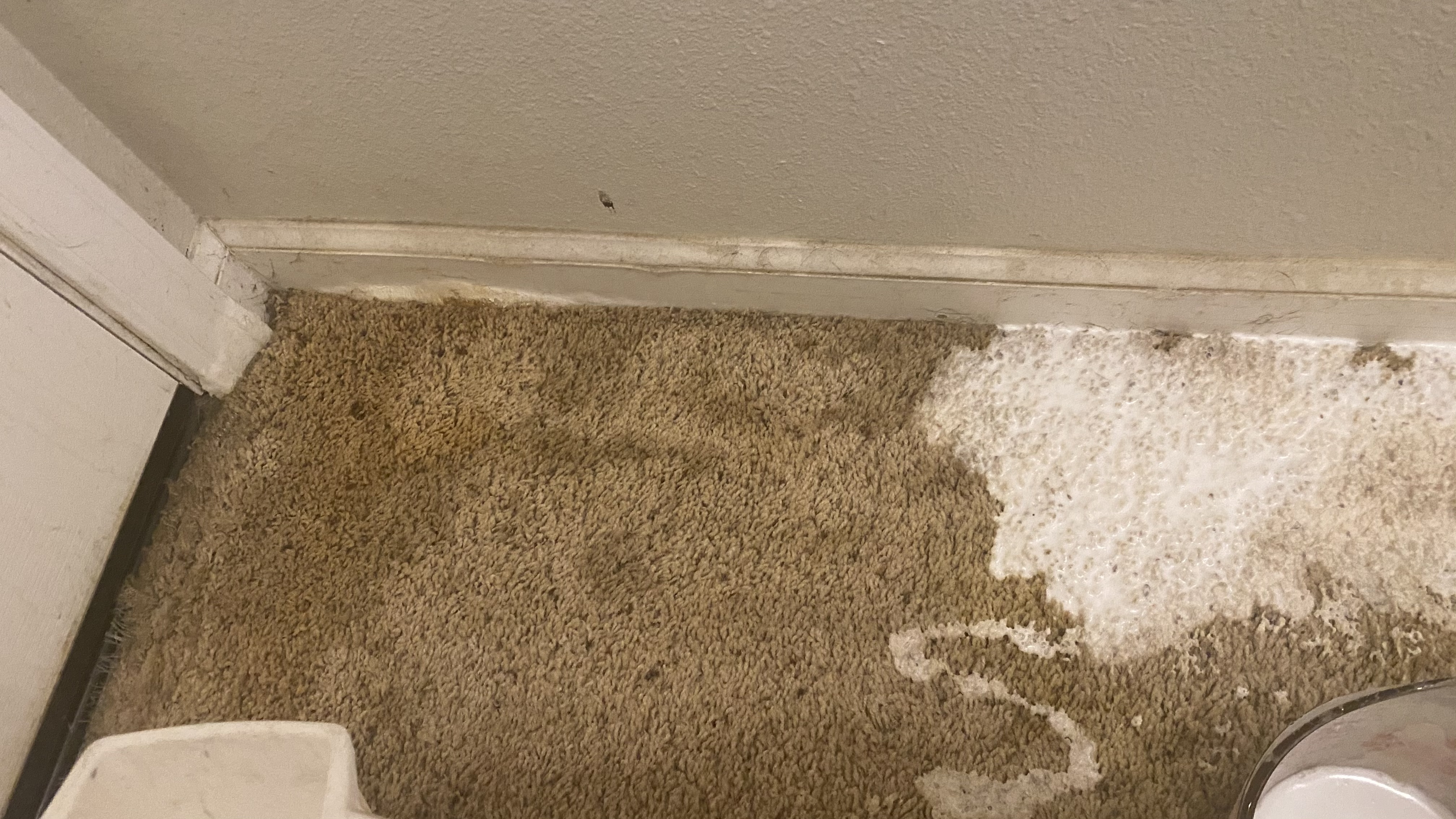 Well, when it rains it pours. Got another big one. White carpet that was very neglected. The resident wanted urine work done but this place was so bad I turned them down. They were insistent that I address the hallway because the smell was so bad. Away to work I went. There was so much urine, the base boards were swollen. See pics below.