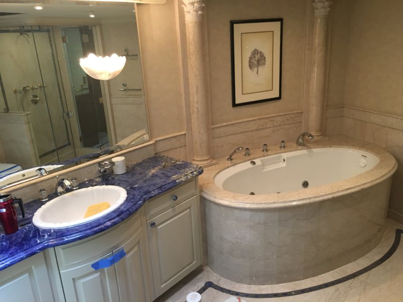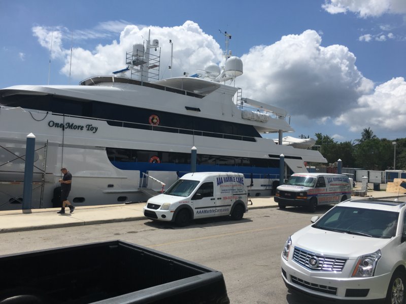 Thanks to Old Coastie for all his help and telephone support;)....tried out the $3000 model wasn't really able to extract the dirt from within the marble, does clean the surface nicely but I can already do that with diamonds and a brush, so I think I'll take the hit with a %15 restocking fee and return it. Think a heated spinner would be the only thing and all I could find is truck mounts nothing I could use....if you need the steamer the two cord $4000 machine would be the way to go, can run at high or med pressure for long periods....in the photos the two squares were the only thing we cleaned with the steamer....the rest just diamonds, a degreaser, scrub brush on the swing machine and me on my hands and knees all day like Mikey filling holes;)....last photo is a little boat we worked on this weekend aptly named "One More Toy;)"
