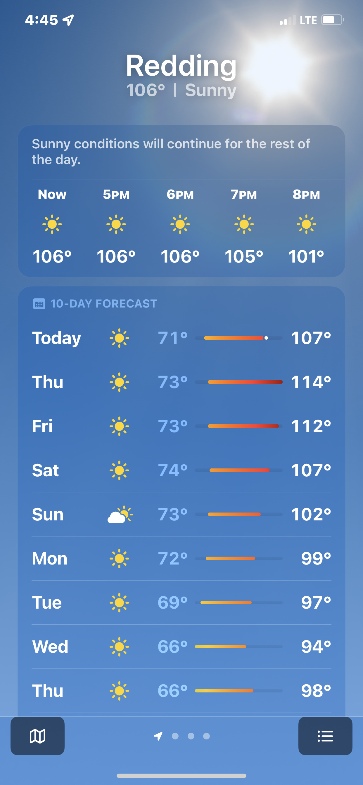 Raining a little finally and only 82 at 10:30 in