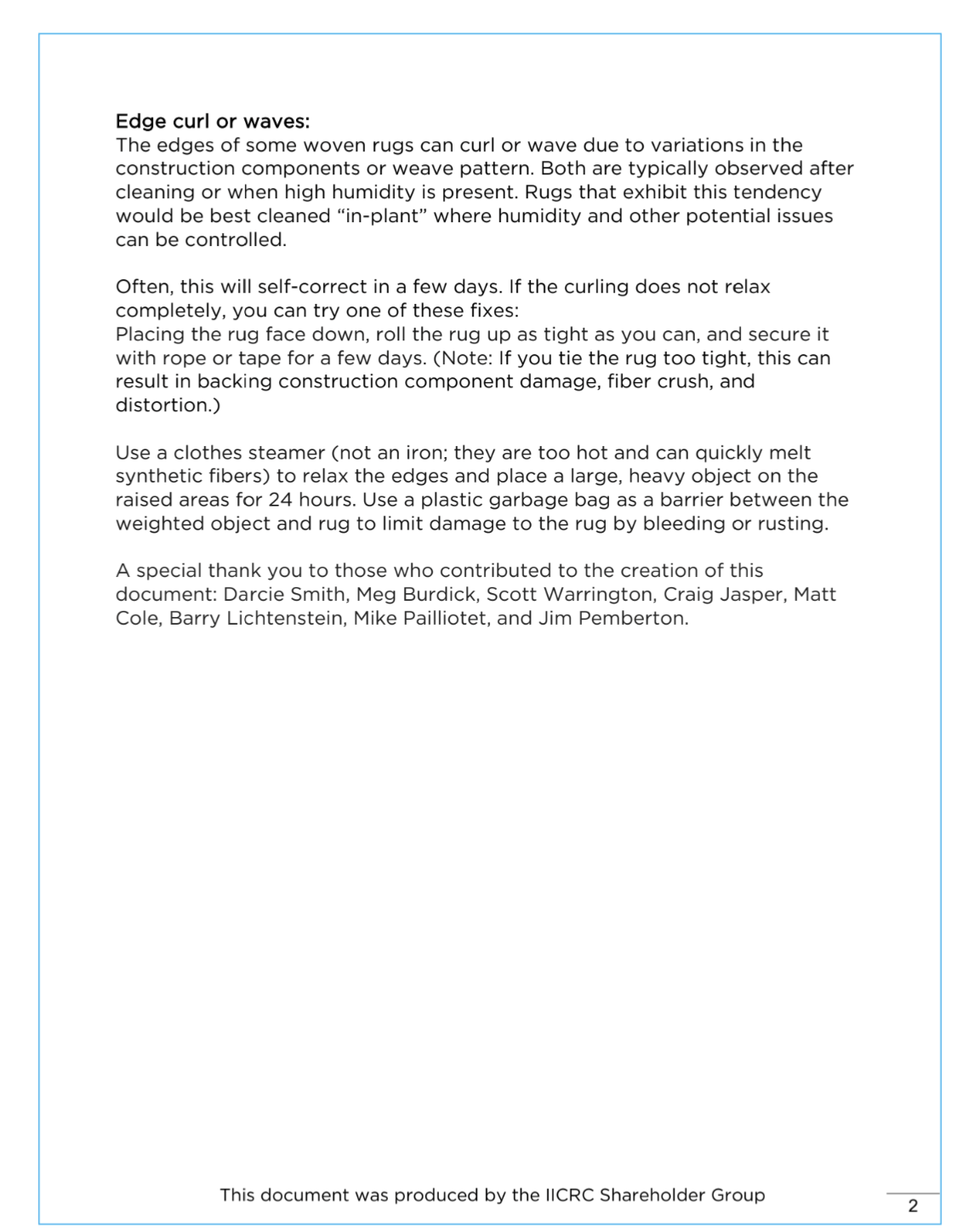 I let them know the risk never had a call back. Now I did have a large bonded living room rug with heavy furniture that buckled what a nightmare. Nice thing around here is once you screw something up you see the same kind of materials so you know what to stay away from.
