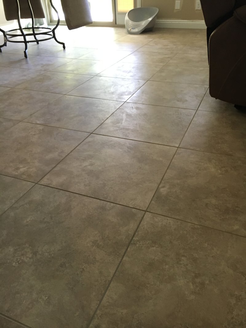 We used HydraBoost CT on this tile the other day. Rinse it well and all looked good when we left. Customer called and said there's a ton of residue and it makes foot prints on the tile when they walk on it. They had movers come in and put in furniture and when I went out today to use a PH neutral floor cleaner and mopped it everything looked fine. To me this just looks like dirty foot prints but when I said that she said how come there weren't foot prints when they came to look and buy the house. I never had this issue with HydraBoost before and her tile wasn't bad at all when we cleaned it. What does this look like to you?