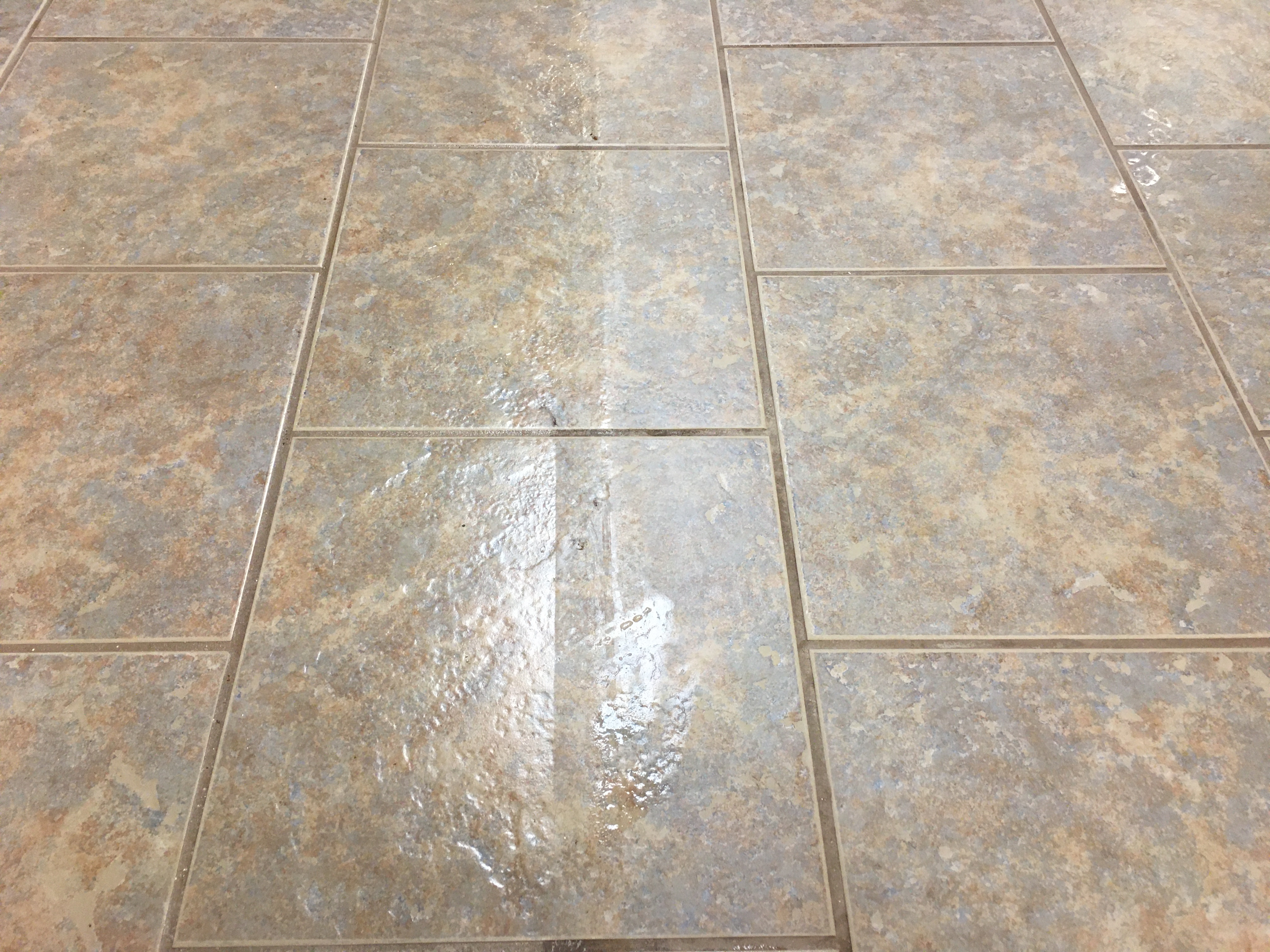 Grout is porous, so stains can be acid etched or wire brushes etch too.