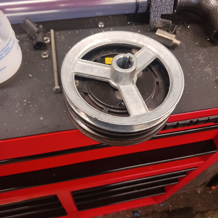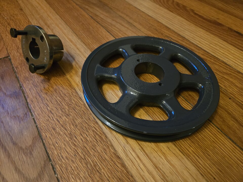 When I was first prying the old pulley off and the armature got jammed, it seems that it quirked the whole pulley. The dang thing looks wobbly when it is running now, not just the flanges but the whole thing. Which I imagine will probably fry the bearing or something else in my pressure pump if I don't address it soon. I was trying to find a simple vbelt pulley with no clutch to replace this wobbly one online today and so far it is difficult to find a 24mm bore 7in OD vbelt pulley that takes an A class belt.
