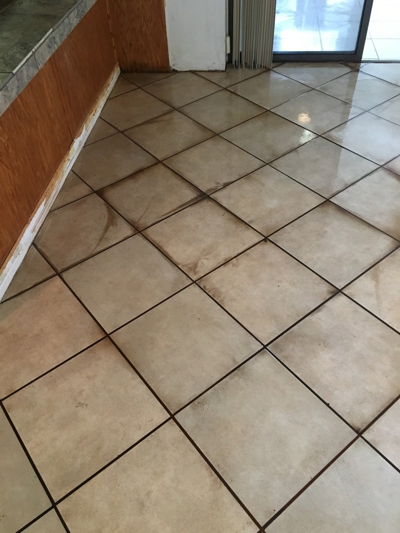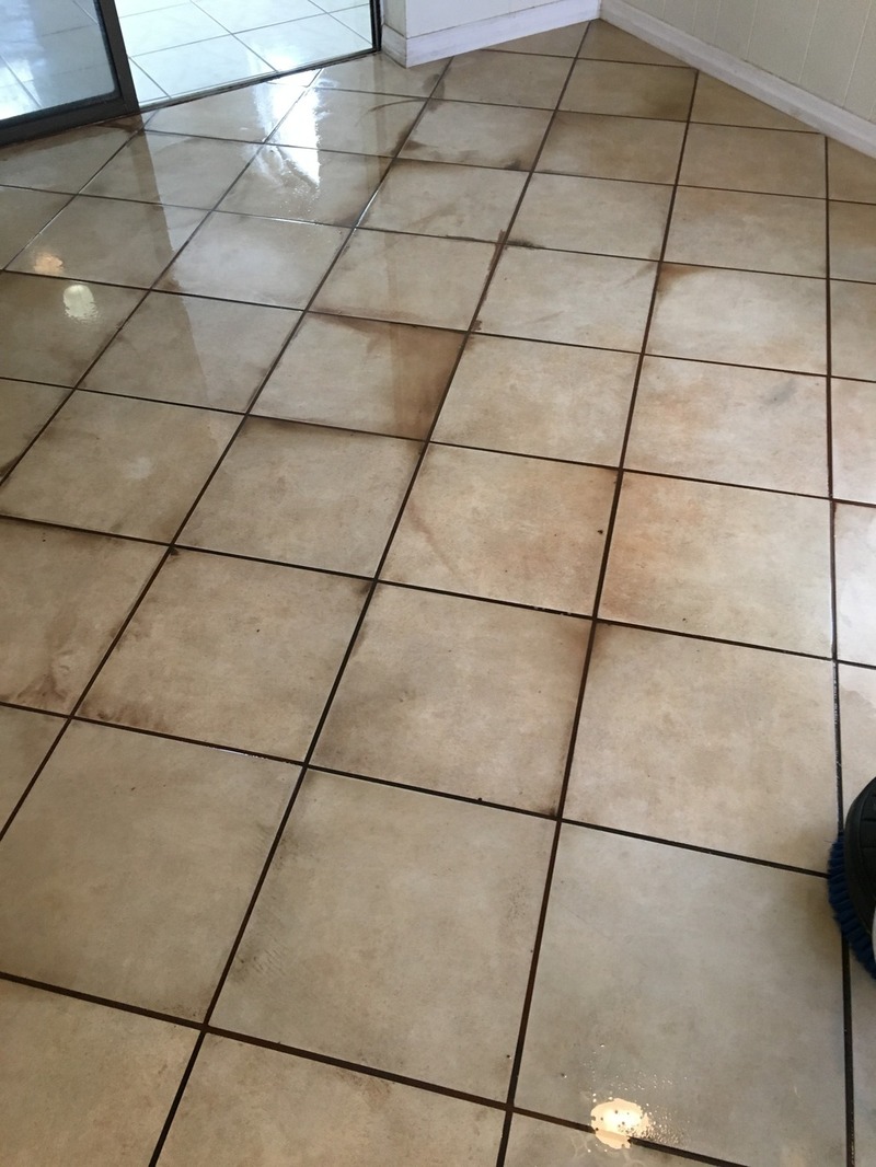 This lady had what I thought was dark pink ceramic tile and some pretty rough shape grout. 20 years old never had a professional cleaning. I was dreading the cleaning afraid of choppy uneven results.