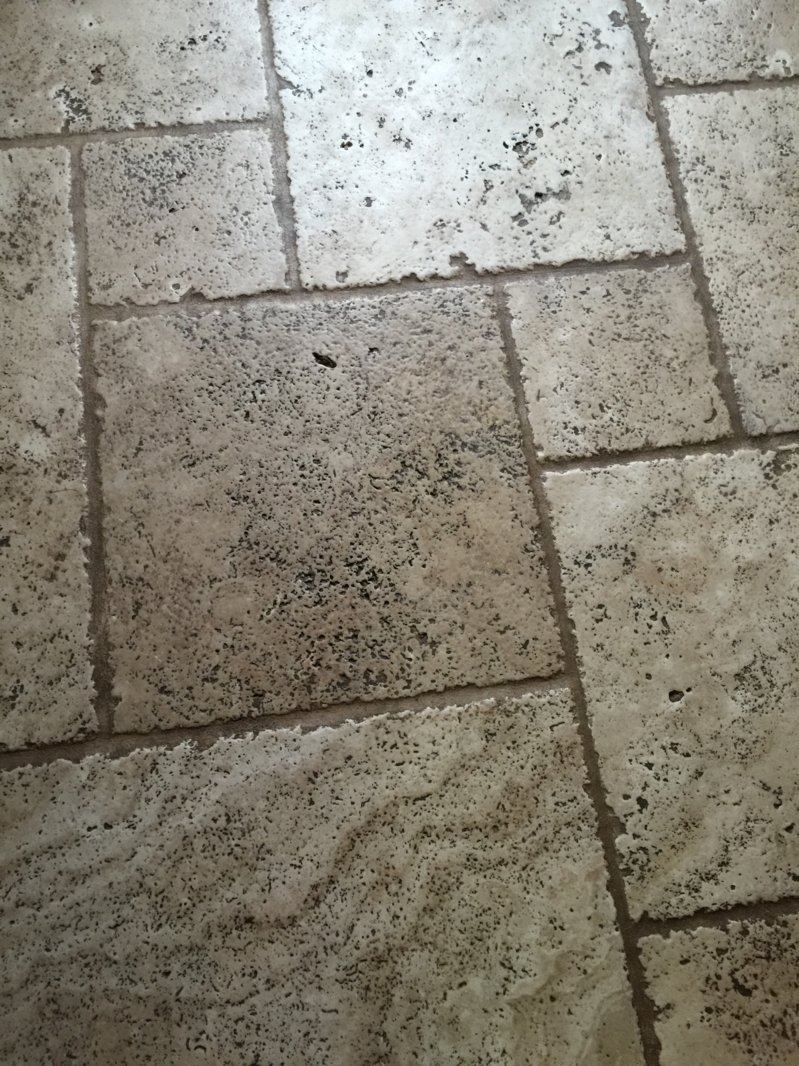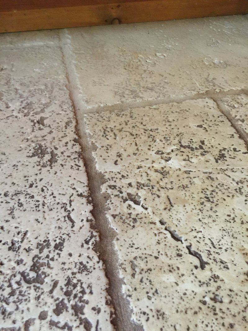 I did a quote today and came across this tile and grout. Looks like it's has been sealed with the soil in the grout. Maybe a colour seal attempt. Any thoughts