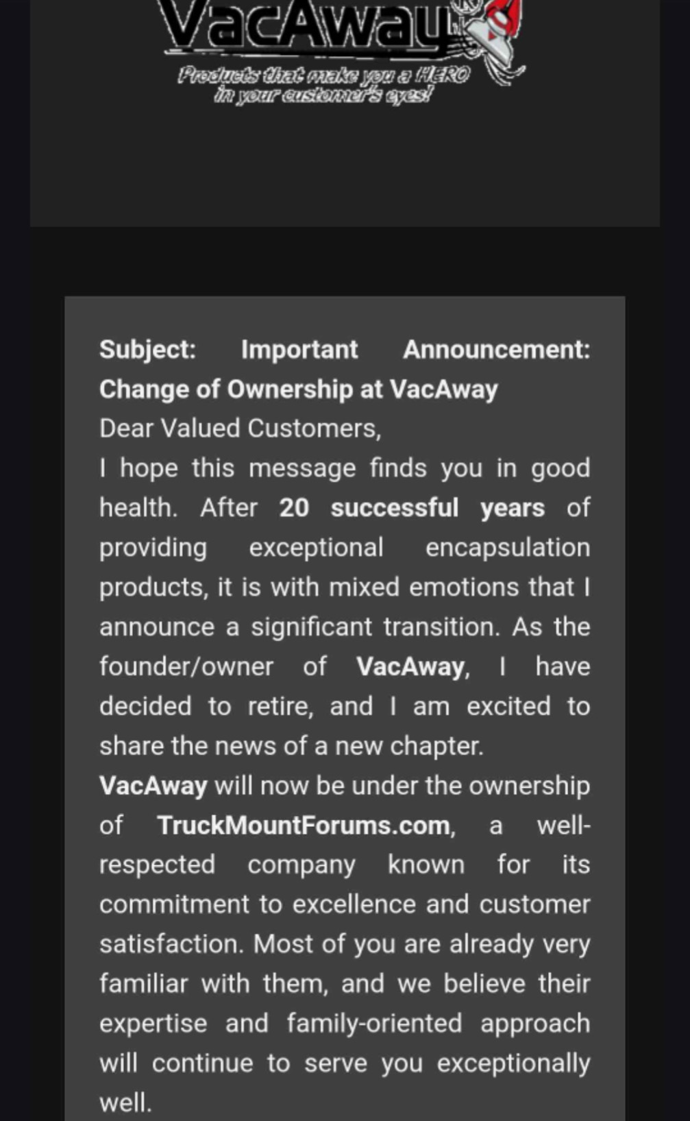 Vac-A-Way under new ownership
